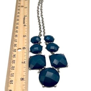 Blue Faceted Necklace & Bangle Set Geometric Design Silver-Tone Chain. N71