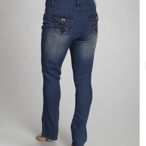 With their pretty wash and distinctive embellished pockets, these bootcut jeans are sure to become an instant wardrobe favorite. The classic silhouette flatters the figure and the stretchy fabric feels fabulous on feminine curves. Measurements (size 16): 32" long. 55% ramie / 26% cotton / 17% Terylene / 2% spandex. Machine wash, tumble dry.