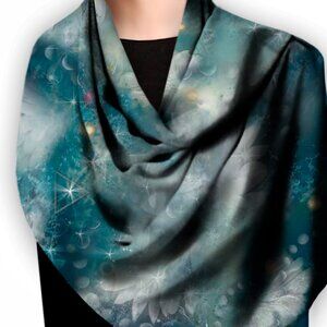 The large 36″ square lends enchanted versatility and signature style with multitudes of fashionable options such as a light over-the-shoulder wrap, head dress or neck wrap.