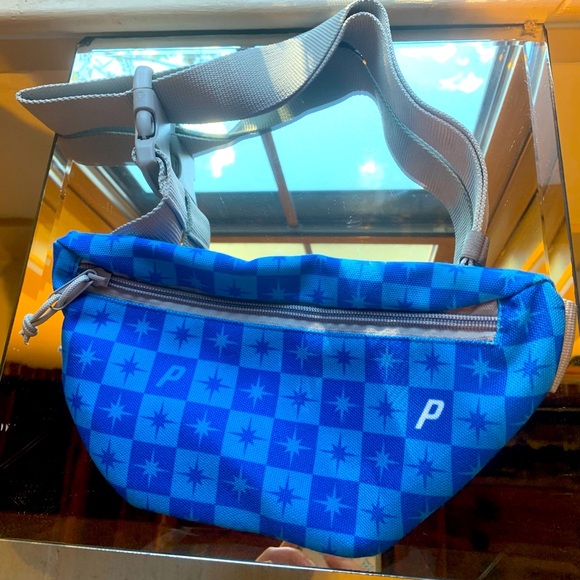 Progressive electric blue Fanny pack, adjustable belt sizing.