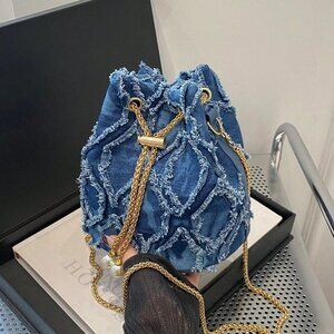 Blue Fashionable Women's Diamond-Shaped Shoulder Bucket Bag