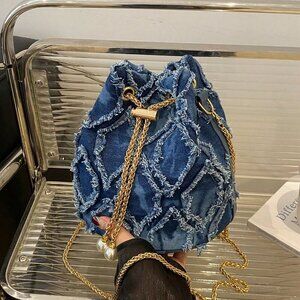 Blue Fashionable Women's Diamond-Shaped Shoulder Bucket Bag