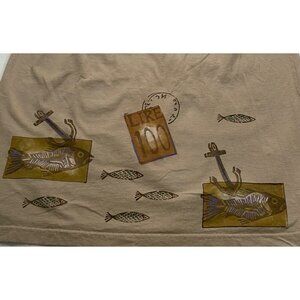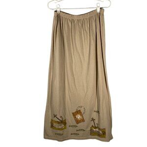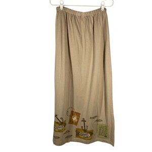 Blue Fish 1998 maxi skirt fish print elastic waist hand printed Size 2 organic