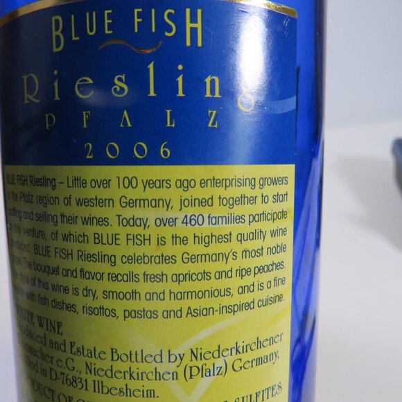 Blue Fish Dry Riesling EMPTY 2006 Cobalt Blue Bottle with Yellow Label