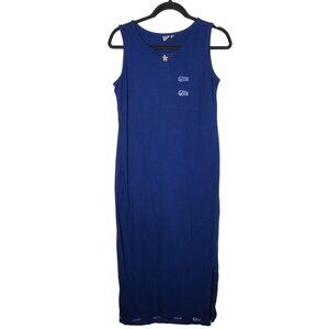 Blue Fish Painted Maxi Dress Size Small Lagenlook Linen Beach Art to Wear Summer