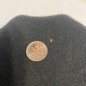 2 tiny holes , not noticeable when wearing (see photos with the dime to show size of pinholes