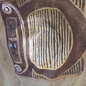 As is typical of Blue Fish hand-painted clothing, this item was designed to fit a huge range of body heights and sizes--think from Size 22 on down to maybe 14 (or even smaller for a taller person). A really versatile, collectable piece of art clothing.