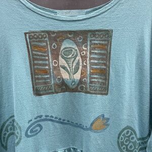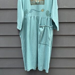 Vintage Blue Fish teal dress with artistic front and back print.