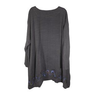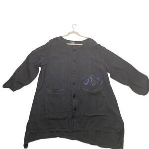 Blue Fish tunic top wave print button front hand printed Size 2 neutral organic