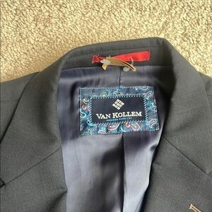 This blue blazer showcases a sleek, fitted silhouette with elegant notched lapels, crafted from a textured wool-blend fabric. Its single-breasted design offers a classic and versatile look, ideal for professional or formal occasions.