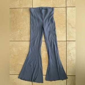 Blue Flared Ribbed Pants