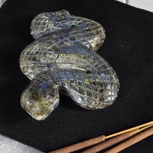 Large Blue Flash Labradorite Serpent Incense Holder. These incense holders are perfect for your altar or anywhere that you feel called to place the power of the serpent. *** #6 of the Spirit Animal Collection ***