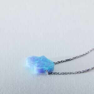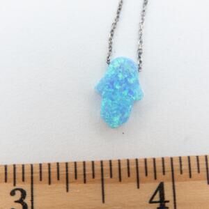 Blue Flash Opal Hamsa Silver Necklace Pendant Unique Protection Power Strength Palm Shape Dainty Chakras Energy Religion Tradition New Age NWOT