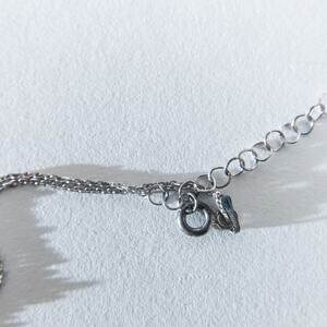 I received this beautiful necklace as a gift about 10 years ago. I rarely wore it, so it has sat in my jewelry box! The pendant is approx. .25 in. tall and wide wide, and the chain is approx. 16 in. so it's more of a choker fit depending on your neck size! (Please see last picture for measurement with a ruler.) I'm almost certain the chain is silver- I don't see a mark on the chain, but I am very sensitive and get a rash if I wear any metal besides silver and gold.