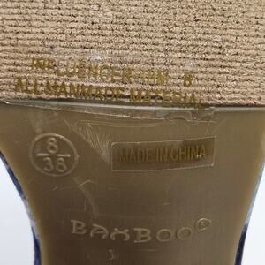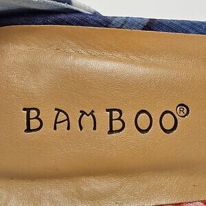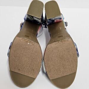 Blue Floral Bamboo Influencer Wrapped Block Heel Ankle Strap Sandal Size 8