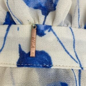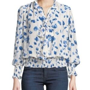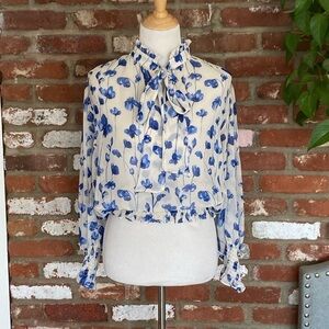 Blue Floral Blouse MISA Los Angeles Vyvienne Floral Tie-Neck Blouson Top small