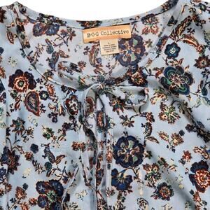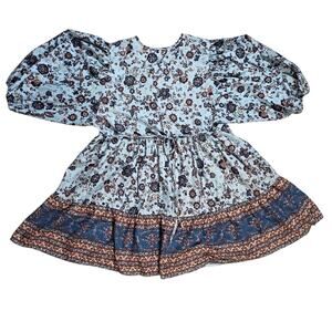 Blue Floral Boho Style Dress Sz Large BOG Collective Blue Mini Casual Cottage Romantic Balloon Sleeves