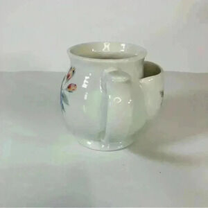 Floral Butterfly on White Hot Tea Coffee Ceramic Cup with Tea Leaf Bag Holder Excellent Preloved condition.