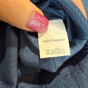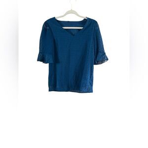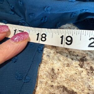 New without tags, no brand, size small, blue with ditsy floral pattern. Features short ruffle sleeves and lining. Made of 100% polyester.