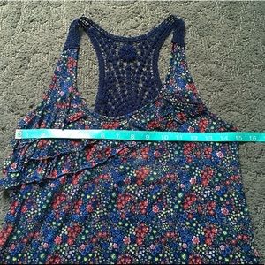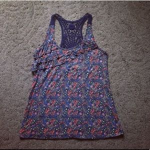 Blue Floral Eyeshadow Racerback Tank Top, size medium. Worn twice and like new. See pictures for measurements. 😊