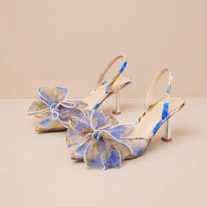 Size 8 never worn before. Betsey Johnson SB-Kelli Blue Tulip Floral Bow Pointed-Toe Pumps from Lulus. Original price $119