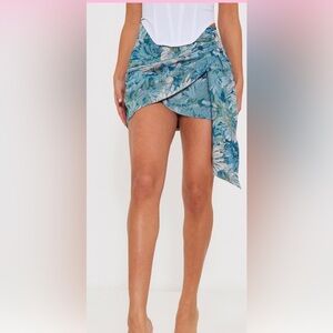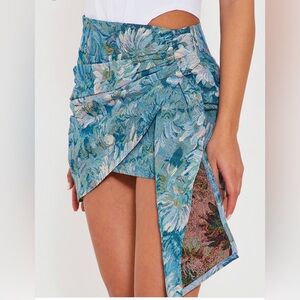 Blue Floral Jacquard Ruched Side Mini Skirt size 12