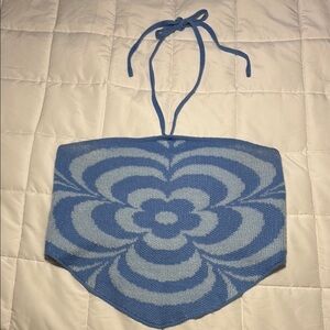 Blue Floral Knit Halter Top