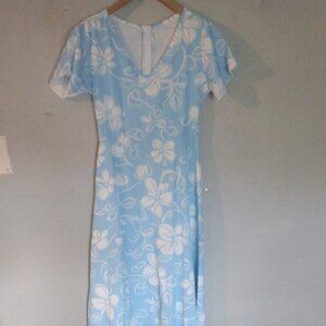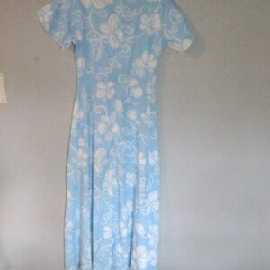 Elegant blue maxi dress with white floral pattern. Perfect for summer occasions. Size XS