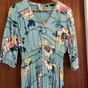 Blue Floral Maxi Dress with Real Buttons Up Front