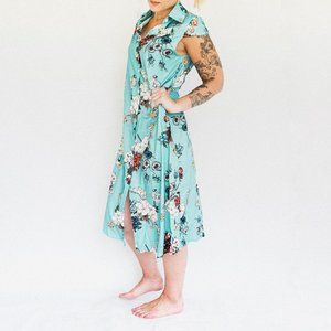 Blue | Floral Midi Button-Up Dress