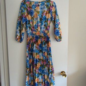 Worn once as a wedding guest. like new midi length I'm 5ft 4. The colours blend well different shoes and bags
