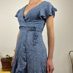 Blue Floral Midi Wrap Dress - Women’s S - Cottage Core