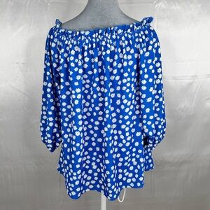 Blue Floral Off-Shoulder Top bishop sleeve size L