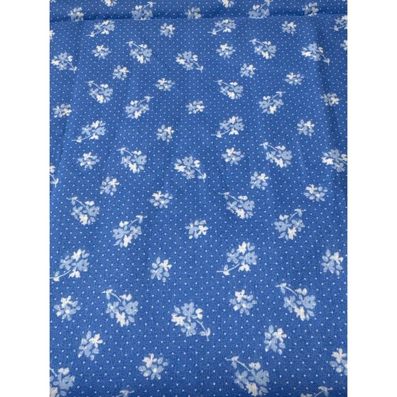Blue Floral Polka Dot Fabric 15" x 44" Sewing Quilting