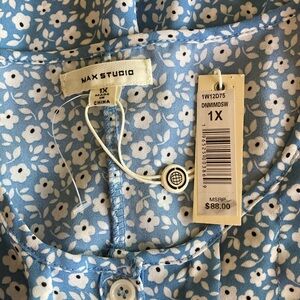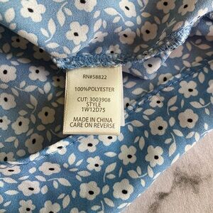 Charming blue blouse with floral pattern and ruffle sleeves. Features a decorative white flower design with 1/4 button up Feel free to make an offer! ☺️