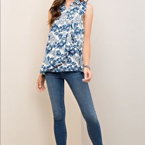 Blue Floral Ruffle Top