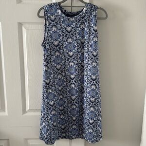 Chic sleeveless dress with a blue floral pattern. Perfect for casual outings. Great condition, only worn once, no holes or stains.