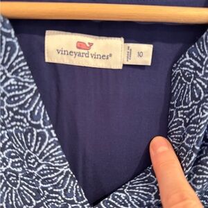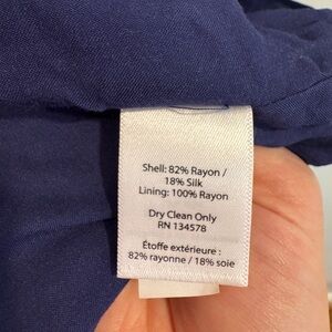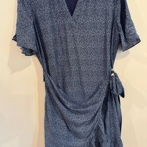 Elegant navy dress with floral design. Features a wrap style and short sleeves. Excellent material silk blend super soft.