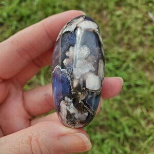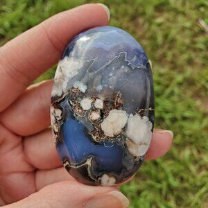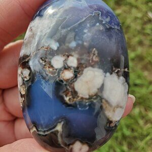 One purely unique Blue Flower Agate Palm Stone (FA610)