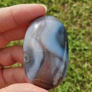 One purely unique Blue Flower Agate Palm Stone (FA615)