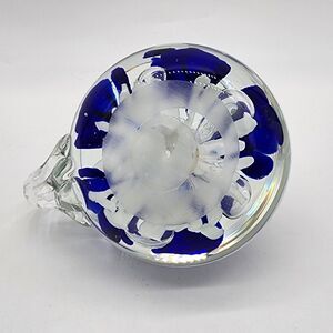 It features the excellent designs of controlled bubbles, flowers, and blue swirls hand blown in the St Clair's known fashion.