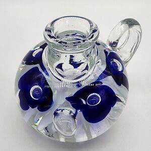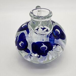 Blue Flower Bubble St Clair Studio Art Candle Holder Paperweight Unmarked