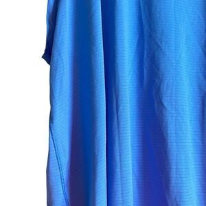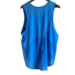 Keywords: tank top, sleeveless, flowy, blue, athletic, workout, casual, exercise, gym, yoga, activewear, high low hem, comfort, breathable