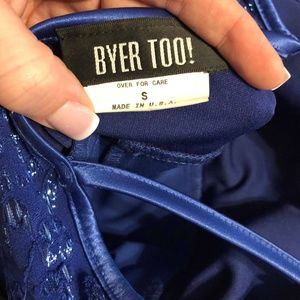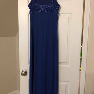 Beautiful blue gown. Perfect for wedding, dinner, cruise, prom, etc. Shimmering thread creates a beautiful design on the chest, while the material creates a beautifully fitted silhouette. Size Small--54" long.