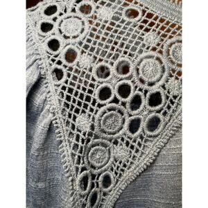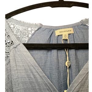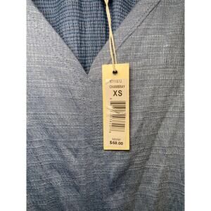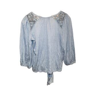 Add a touch of bohemian flair to your wardrobe with this adorable blue front tie shirt! This cute top is perfect for a casual day out or dressing up for a fun evening. The unique front tie detail adds a playful and stylish touch, while the soft blue color complements any outfit. It is in excellent condition. Don't miss out on this must-have piece!