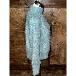 Blue Fuzzy Knit Turtleneck Sweater Cozy Pullover Long Sleeve