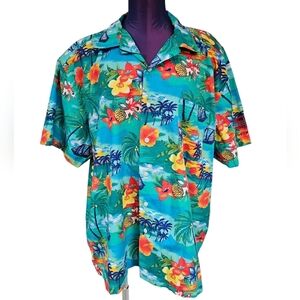 In excellent condition Blue Generation Colorful Tropical Button Front Hawaiian Shirt Size XL Men's.