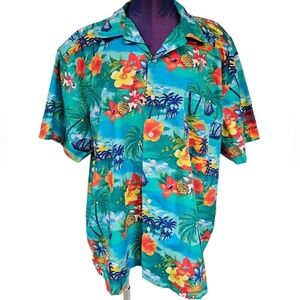Blue Generation Colorful Tropical Button Front Hawaiian Shirt Size XL Men's F71