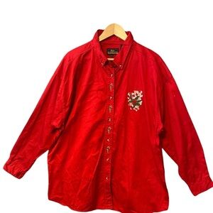 Blue Generation Womens Long Sleeve Embroidered Button Top Size 4XL Red Christmas