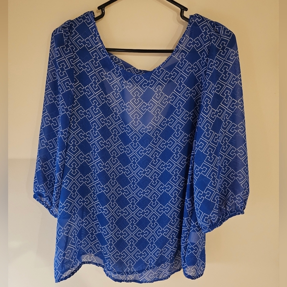 Blue Geometric Pattern Blouse